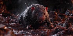 Nocturnal Prowler: A sleek, dark rodent emerges from the shadows, its eyes gleaming with predatory intent, ready to navigate the night.
