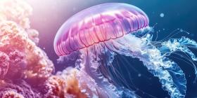 A Phantom of the Deep: A luminous jellyfish, bathed in sunlight, drifts through the ocean depths, its translucent bell and delicate tentacles creating an ethereal spectacle.