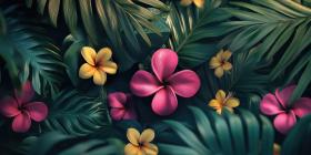 Tropical Tapestry: A vibrant collage of lush foliage and exotic blooms, where vibrant colors and intricate textures create a captivating visual feast.