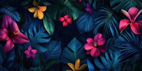Tropical Tapestry: A vibrant collage of lush foliage and exotic blooms, where vibrant colors and intricate textures create a captivating visual feast.