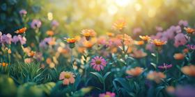 A Tapestry of Blooms: A vibrant field of flowers basks in the warm sunlight, where lilies of various hues stand tall, creating a breathtaking natural spectacle.