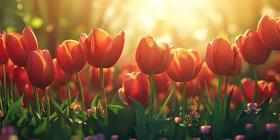 A Field of Dreams: A vibrant field of tulips, bathed in the warm glow of the setting sun, creates a breathtaking spectacle of color and natural beauty.