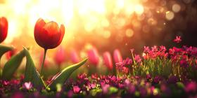 A Field of Dreams: A vibrant field of tulips, bathed in the warm glow of the setting sun, creates a breathtaking spectacle of color and natural beauty.