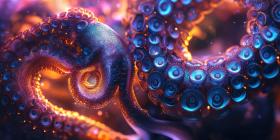 Chromatic Cephalopod: A mesmerizing octopus, bathed in a kaleidoscope of colors, mesmerizes with its iridescent skin and intelligent gaze.