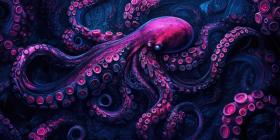 Chromatic Cephalopod: A mesmerizing octopus, bathed in a kaleidoscope of colors, mesmerizes with its iridescent skin and intelligent gaze.