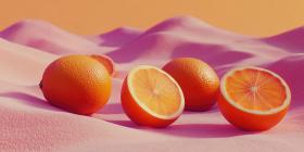 A vibrant scene of juicy oranges bathed in warm sunlight, reflecting on a shimmering surface, creating a sense of summery bliss.