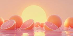 A vibrant scene of juicy oranges bathed in warm sunlight, reflecting on a shimmering surface, creating a sense of summery bliss.