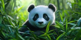 Bamboo Bandit: A mischievous panda cub peeks through the lush greenery, its adorable face captivating hearts and stealing every scene.