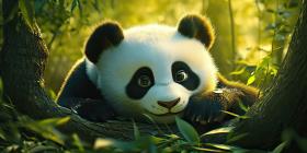 Bamboo Bandit: A mischievous panda cub peeks through the lush greenery, its adorable face captivating hearts and stealing every scene.