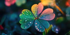 Colorful Oxalis Leaves with Dew Drops, Vibrant Heart-Shaped Foliage, Whimsical Nature, Macro Photography, Botanical Art, Close-up Leaf Detail