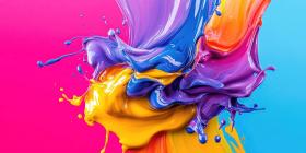Vibrant Paint Splash, Liquid Color Burst, Dynamic Motion, Artistic Fluidity, Macro Photography, Colorful Explosion, Creative Energy, Vivid Hues, Abstract Art