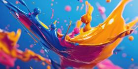 Vibrant Paint Splash, Liquid Color Burst, Dynamic Motion, Artistic Fluidity, Macro Photography, Colorful Explosion, Creative Energy, Vivid Hues, Abstract Art