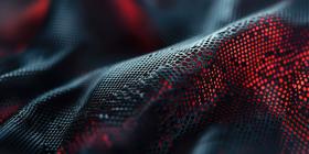 Abstract Geometric Background with Interlocking Black Hexagons and Red Glowing Lights for Technology, Sci-Fi, and Modern Design Concepts