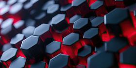 Abstract Geometric Background with Interlocking Black Hexagons and Red Glowing Lights for Technology, Sci-Fi, and Modern Design Concepts