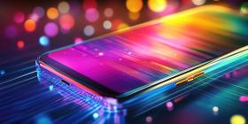 Smartphone with Abstract Neon Lights and Water Droplets on Screen, Futuristic Technology Concept
