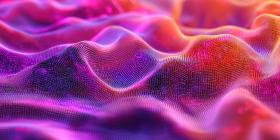 Abstract Digital Waves with Pink, Purple, and Orange Light, 3D Rendered Background