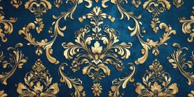 Dark Blue Background with Ornate Gold Floral Pattern, Vintage Damask Style Texture