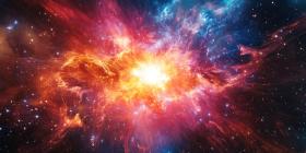 Vibrant Nebula with Orange and Purple Hues, Starry Space Background