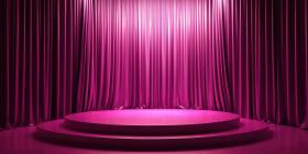 Pink Stage with Round Platform and Velvet Curtains, Theater Backdrop