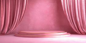 Pink Stage with Round Platform and Velvet Curtains, Theater Backdrop