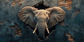Elephant Emerging from a Broken Brick Wall, Symbolic Strength and Breakthrough Concept