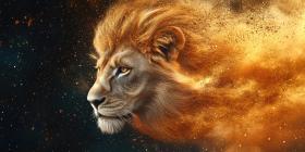 Lion Head with Golden Mane Blending into Sparks and Stardust, Powerful and Majestic Animal Portrait