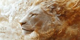 Lion Head with Golden Mane Blending into Sparks and Stardust, Powerful and Majestic Animal Portrait