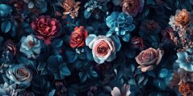 Vintage Floral Painting with Red Flowers, Soft Light, and Textured Background