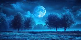 Forest at Night with Glowing Sky, Stars, and Silhouetted Trees, Mystical Nature Scene