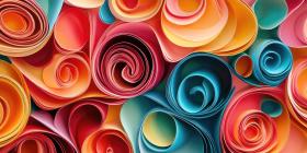 Colorful Rolled Paper Art with Vibrant Swirls and Textures