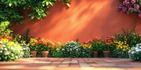 Sunlit Garden with Blooming Tulips and Wildflowers, Peaceful Spring Scene