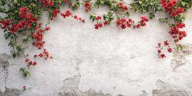 Pink Flowers and Delicate Green Sprigs Frame a Textured White Background