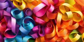 Colorful Rolled Paper Art with Vibrant Swirls and Textures