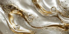 Golden Fluid Texture with Bubbles and Swirls, Abstract Macro Photography
