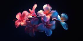 Luminous Frangipani Flowers in a Spectrum of Glowing Hues Against a Dark Background