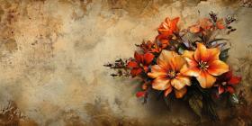 Floral Accent on a Distressed, Textured Wall with Warm Tones