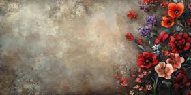 Floral Accent on a Distressed, Textured Wall with Warm Tones