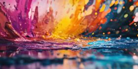 Vibrant Paint Splash, Liquid Color Burst, Abstract Art, Dynamic Motion, Texture and Light, Colorful Explosion, Artistic Fluidity, Macro Photography