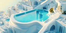 Rooftop Pool with Azure Water in a White-Washed Mediterranean Setting, Aerial View