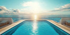 Infinity Pool Overlooking the Ocean on a Sunny Day, Luxurious Cruise Ship Deck View