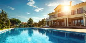 Tropical Beach Paradise with Turquoise Waters, Palm Trees, and Rocky Cliffs, Sunny Day Scene