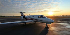 A Cessna Citation Jet on an Airport Tarmac at Sunset
