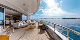 Luxury Yacht Deck with Modern Furniture and Ocean View, Sunny Day on the Water