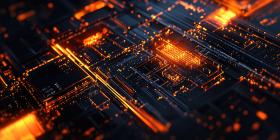 Abstract Dotted Waves with Orange Glow: A dark background with undulating waves of dotted lines, illuminated with an orange glow.
