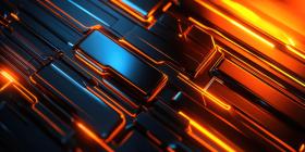 Abstract Dotted Waves with Orange Glow: A dark background with undulating waves of dotted lines, illuminated with an orange glow.
