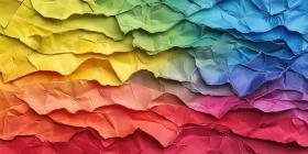 Rainbow Colored Origami Paper: A close-up of folded origami paper in a gradient of rainbow colors, creating a textured pattern.