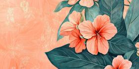 Tropical Bloom: Coral Hibiscus Flowers Amidst Lush, Teal Foliage, A Vibrant Jungle Tapestry of Color and Form.