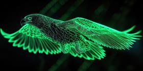 Electric Eagle Gaze: Neon Fire Wings Frame a Majestic Bird, Eyes Burning with Intense Power.