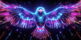 Electric Eagle Gaze: Neon Fire Wings Frame a Majestic Bird, Eyes Burning with Intense Power.