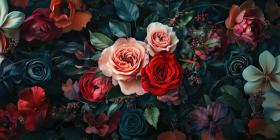 A Riot of Blooms: Roses, Daisies, and Petunias in a Lush Garden, a Symphony of Vibrant Color.